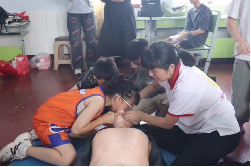 孩子们实操演练心肺复苏