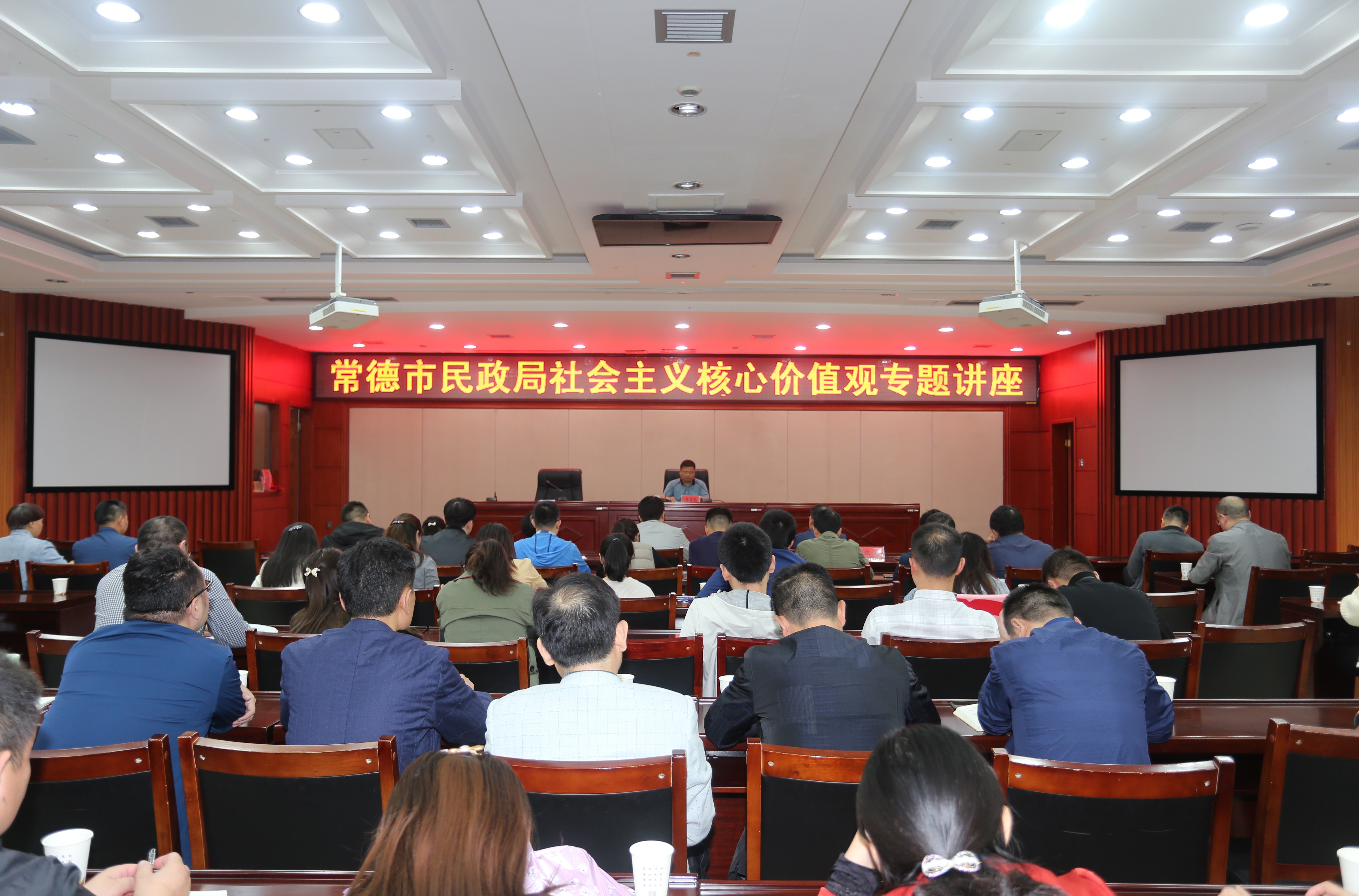 为进一步引导民政干部多角度解读和践行社会主义核心价值观,使社会主义核心价值观在民政干部中内化为情感认同、外化为自觉行动,9月22日下午,南瓜电影 举办社会主义核心价值观专题讲座,邀请中共常德市委宣传部副部长、市精神文明建设指导委员会办公室主任李清彪授课,局党组副书记、副局长殷宗仁主持会议,局机关全体干部职工、直属单位班子成员共80余人参加了讲座。