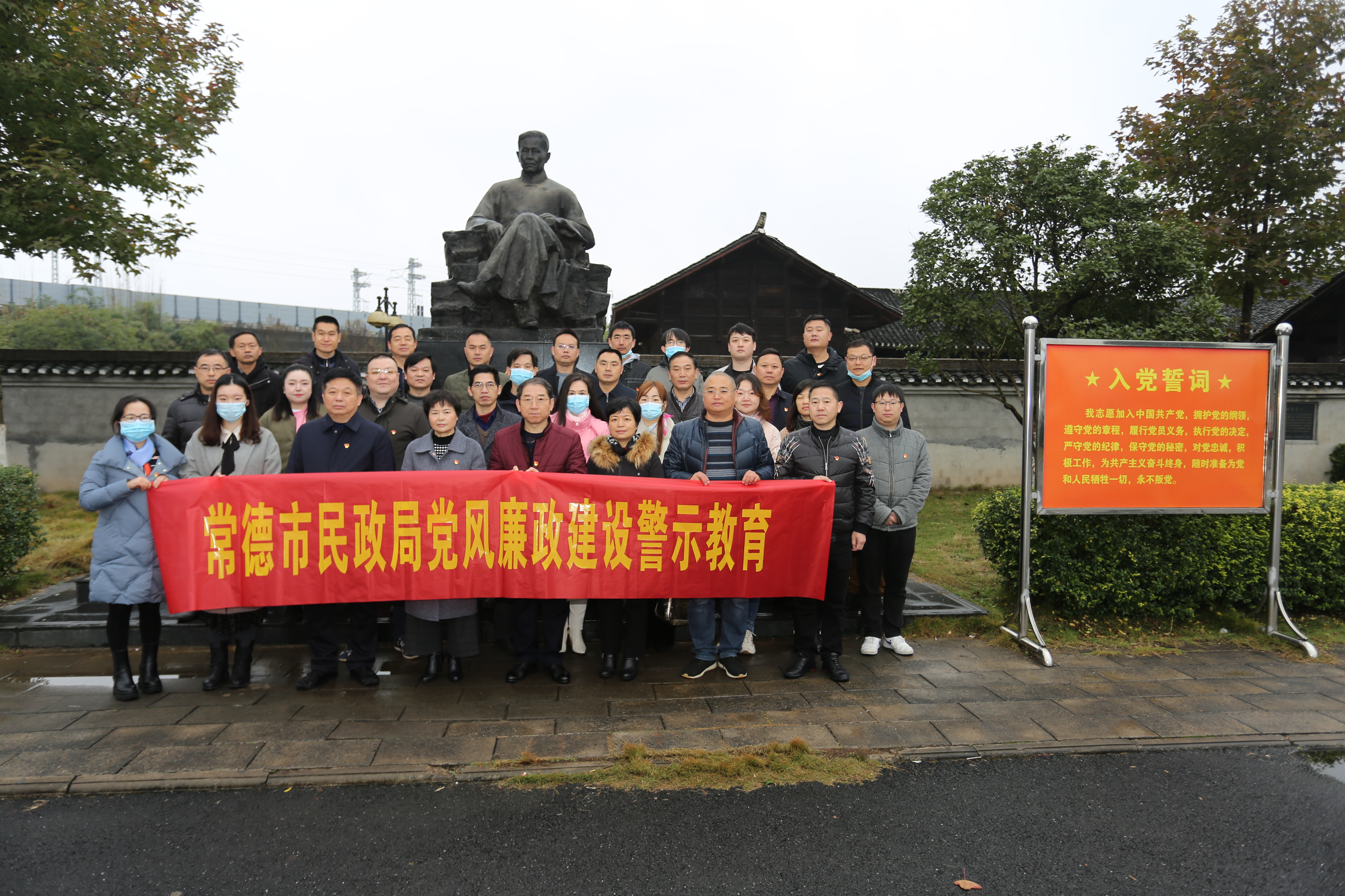 “我志愿加入中国共产党,拥护党的纲领,遵守党的章程,履行党员义务……”参观完后,在南瓜电影 党组书记、局长、二级巡视员龚美爱的带领下,全体党员、入党积极分子一起在鲜红的党旗下,在翦伯赞同志的雕像前,右拳高擎,重温入党誓词,回顾入党时的庄重承诺和坚定决心。