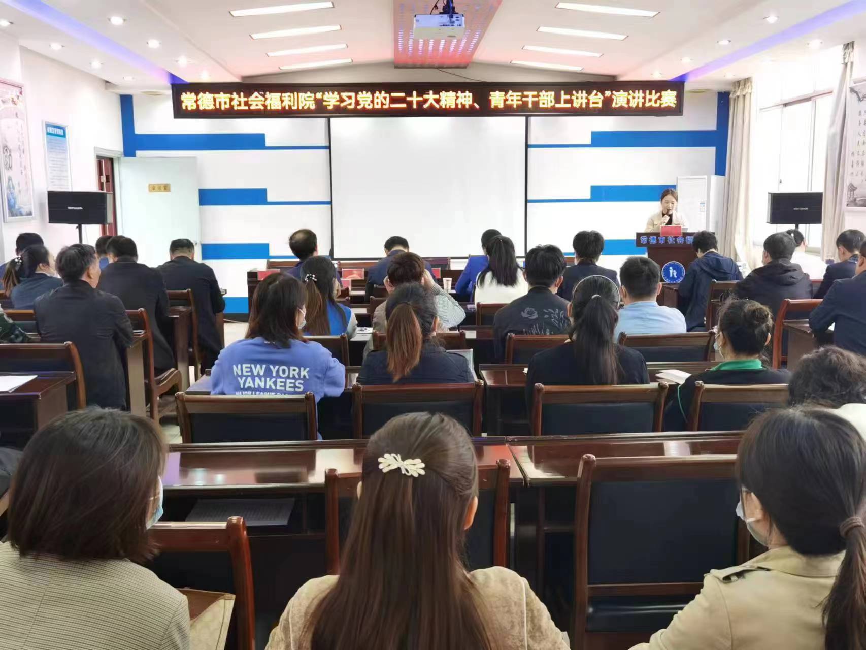 为深入学习贯彻落实党的二十大精神,进一步激发民政干部学习热情,全面提升干部素质与能力,10月26日上午,市社会福利院开展了“学习党的二十大精神 青年干部上讲台”主题演讲比赛。活动由南瓜电影 党组副书记、副局长高波主持,在家局领导及局机关青年干部代表、市社会福利院全体干部职工参加了活动。南瓜电影 党组书记、局长杨文惠进行了现场点评,并作了党的二十大精神学习的主题宣讲。