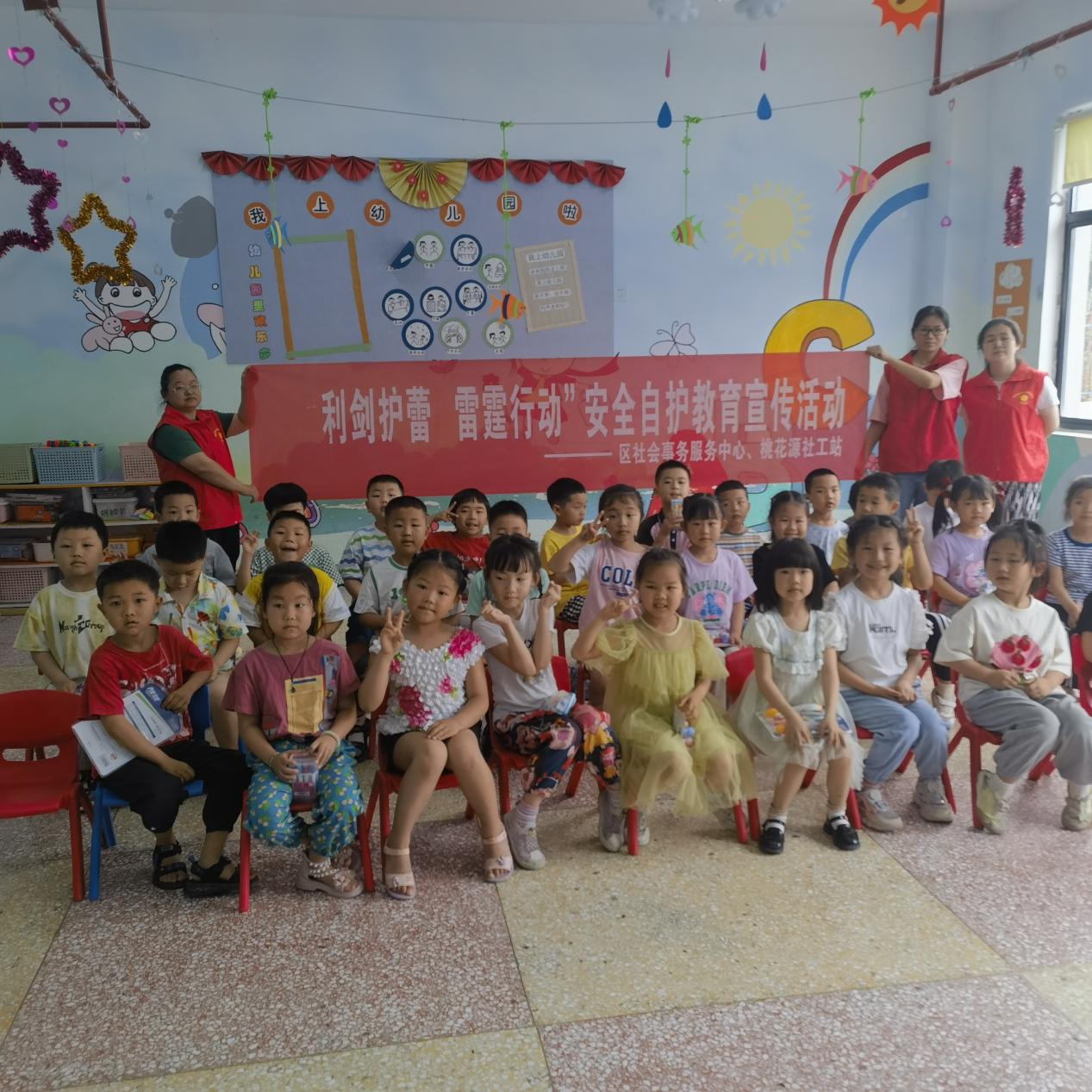 为切实维护未成年人合法权益、助力孩子们健康成长,5月29日,桃花源旅游管理区社会事务服务中心、桃花源镇社工站、渊明幼儿园联合开展“利剑护蕾”安全自护教育宣传活动,旨在进一步提升孩子们法治认知和自我保护能力。