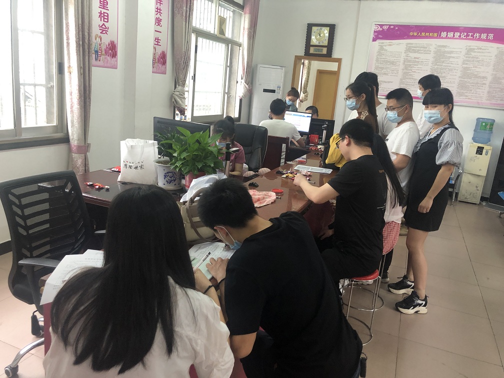 为做好“520”婚姻登记高峰服务工作,石门县民政局高度重视高峰期婚姻登记的安全工作,牢固树立以“人民为中心”的服务理念,提前谋划,科学安排,现场指挥,确保高峰日登记工作安全、有序,制定了应急预案,加强秩序维护、安全防控、疫情防范工作,避免拥挤、踩踏、吵闹、病毒传播等问题。一是加强管理。通过增加婚姻登记机关的工作人员、延长工作时间、增设服务窗口方式缓解人员密集的压力,将登记时间提前至早上8:00开始。提前调配电脑、检查网络及相关设备,确保登记工作运转正常。二是做好防疫。婚姻登记场所要落实好防疫措施,做好卫生、保洁、消毒等工作,体温正常且正常佩戴口罩者方可进入婚姻登记场所。实行预约登记、调控登记数量,分批分段、扫描健康码、佩戴口罩等防控措施。进行预约的准新人有序进入办证大厅,办完后立即离开,配合工作人员做好防疫,遵守现场秩序,婚姻登记井然有序。