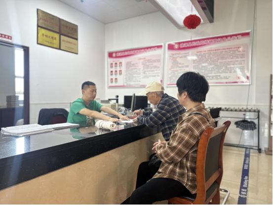 工作人员正在为两位高龄老人办理手续