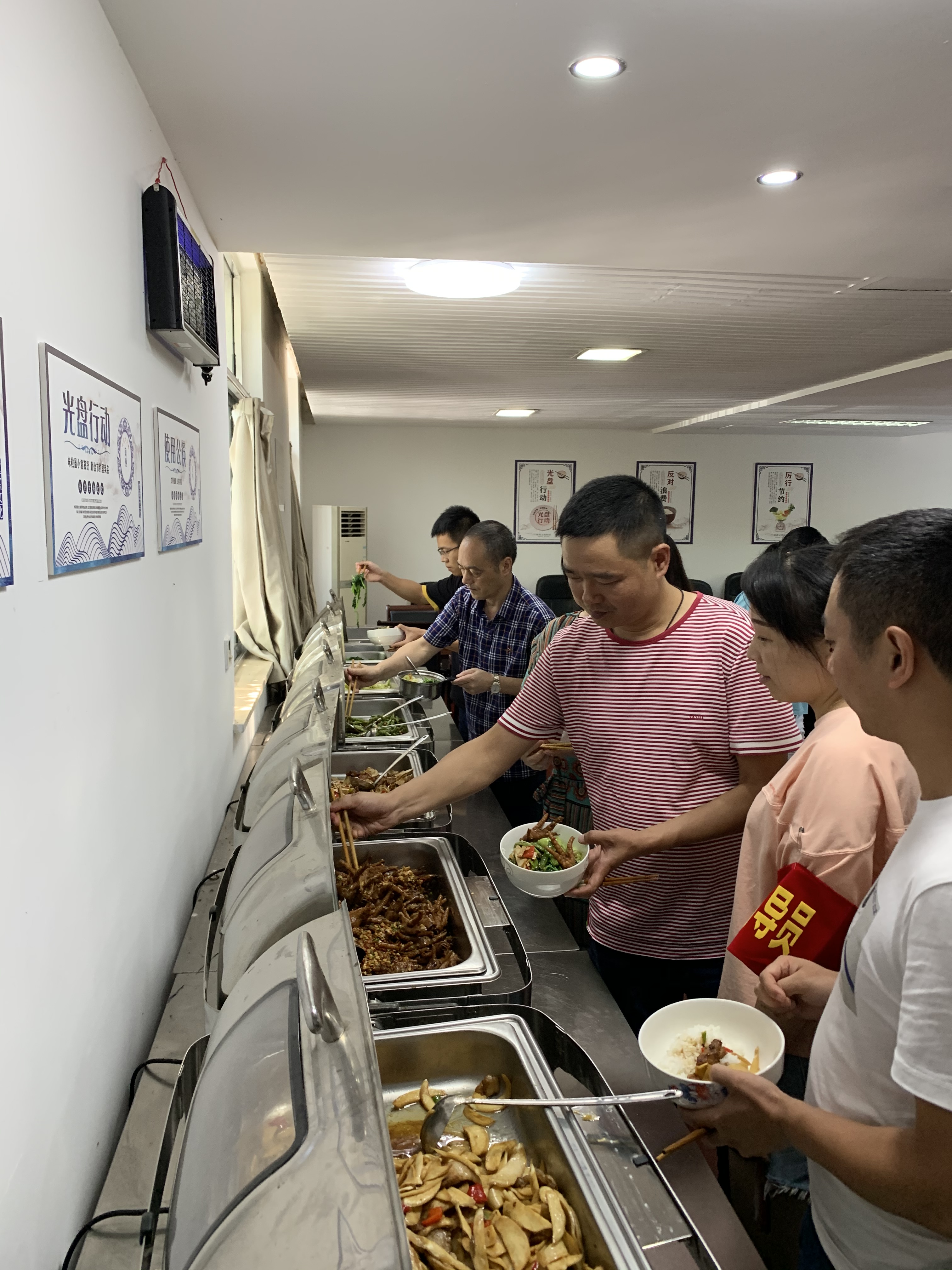 二、劝导监督强执行。一是在“文明餐桌行动”中设置专门劝导员,干部职工在局机关食堂用餐时,劝导员对文明用餐行为进行劝导、监督。二是严格执行中央、省、市各项规定要求,坚决反对各种铺张浪费行为,进一步加强对公务接待和食堂的管理。公务接待遵循务实原则,一律不提特殊要求,不做特别安排、不上高档菜肴,适量点餐。三是加大舆论引导和监督力度。积极宣传厉行勤俭节约反对铺张浪费的新思路、新举措、新进展,定期组织开展专题研究,引导广大干部职工弘扬中华民族勤俭节约传统美德,在全局干部职工中树立文明节俭的餐饮理念和习惯。