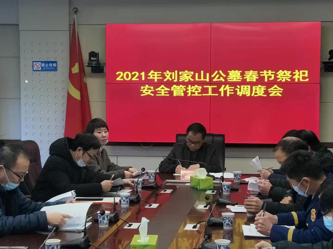 2月2日上午8:30,在津市市市政府三楼会议室,召开了2021年刘家山公墓春节祭祀安全管控工作调度会。会议由市政府办副主任谭翼云主持,民政、公安、城管、交警、消防救援、市监、应急、林业、卫健、交通、融媒体及襄阳街街道办事处、金鱼岭街道办事处等13家单位参加。