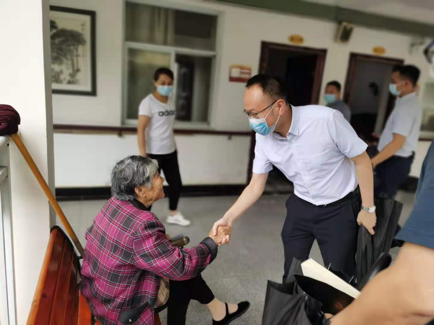 调研中,彭子晟先后参观了养老服务中心住宿区、活动区及食堂等场所,走访慰问了部分入住老人,详细了解了入住老人的身体和生活状况。