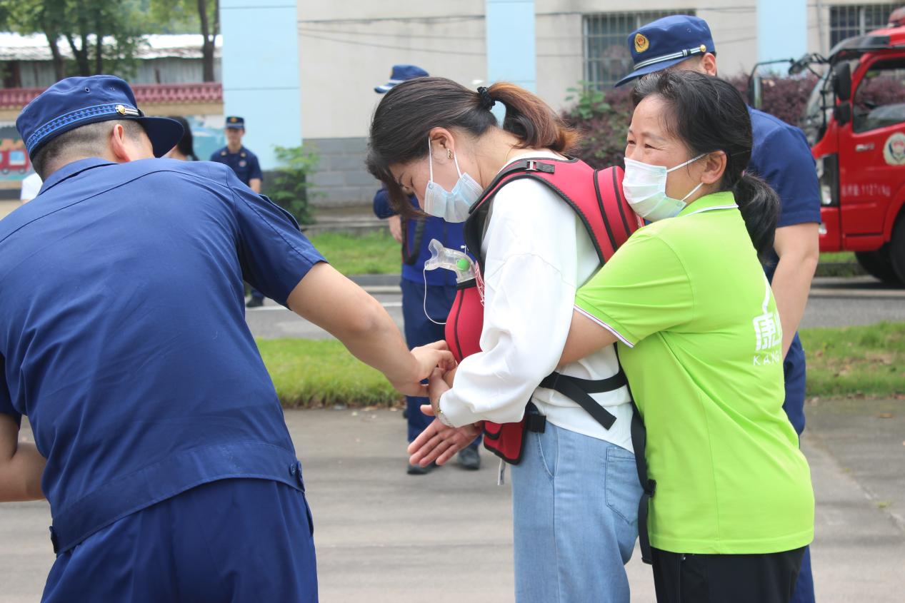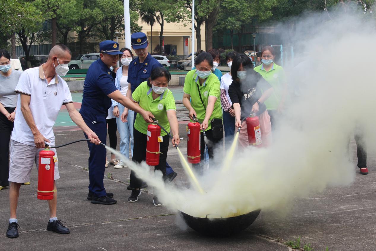 “‘提、拔、握、压’是灭火器操作的四字口诀,海姆立克急救法同样也有一个口诀便于大家牢记——‘剪刀石头布’。剪刀是指……”在消防知识培训环节,张磊同志以通俗易懂的语言和幽默风趣的比喻,辅以防毒面罩、灭火器、高压水枪等实操演练,互动性十足,引得孩子们和各部门职工都全神贯注投入其中。
