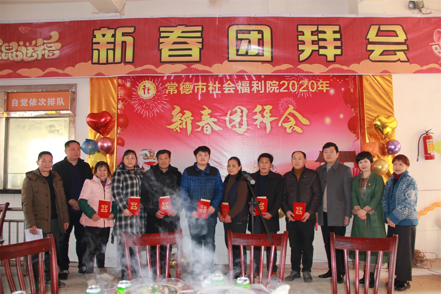 2020年1月20日,农历腊月二十六,常德市社会福利院张灯结彩,欢声笑语连连,一年一度新春团拜会,正隆重举行。市社会福利院全体班子成员参加,向老人、儿童们拜年,共迎鼠年新春佳节。