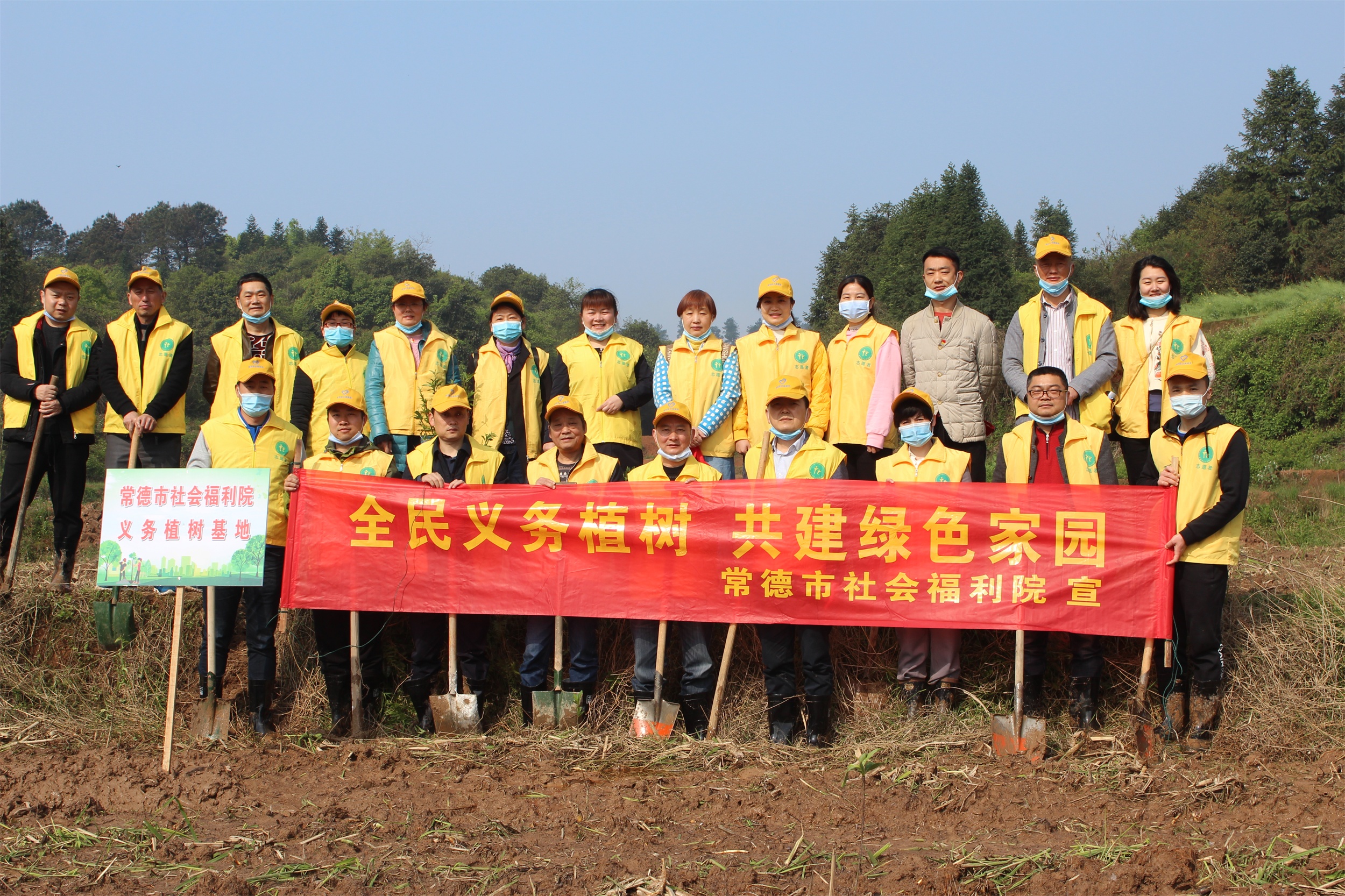 志愿者义务植树活动合影