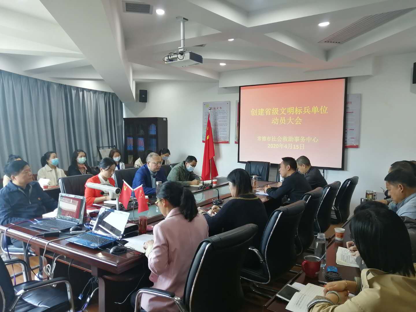 会议最后,支部书记、主任卞德荣同志亲自作创建动员,他指出,省级文明标兵单位创建工作竞争激烈,全体干部职工一定要充分提高认识;创建办要牵好头,其他同志要积极配合,尽快制定出全年创建工作计划,将考核指标逐项分解到科室、到人、到时间,确保刚性指标不丢分,特色工作有加分;要迅速补齐短板,强化素质礼仪和文明窗口形象,做好全方位考核;活动开展要与党建、工会、业务紧密结合,重点开展好业务大比拼,在5月份举办为期2天的业务讲课活动,加强公文写作、救助业务培训;尽快启动救助服务质量大提升活动。卞德荣同志还表示,中心党支部将全力保障创建经费开支,大家一定要齐心协力,共同把创建工作做出特色、做出亮点,力争成功创建省级文明标兵单位。