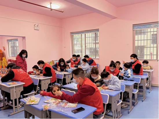 活动前,根据福利院儿童的特点,工作人员精心策划了一场关爱活动,旨在锻炼孩子们的反应能力、动手能力和团队协作能力。在“反应力游戏”环节,通过志愿者们的耐心引导,鼓励孩子们大胆表现,一来一往间初次见面的隔阂便消散不少,孩子们此起彼伏的笑声回荡在整个教室。在手工制作环节,志愿者和孩子们共同制作了“花篮”“手提包”“春景粘贴画”等童趣手工艺品。看着自己亲手制作的作品,孩子们脸上洋溢着自豪和喜悦的笑容。活动最后,志愿者们还为孩子们送上了精心准备的康复学习用品、零食等礼物,受到孩子们的热情回应。