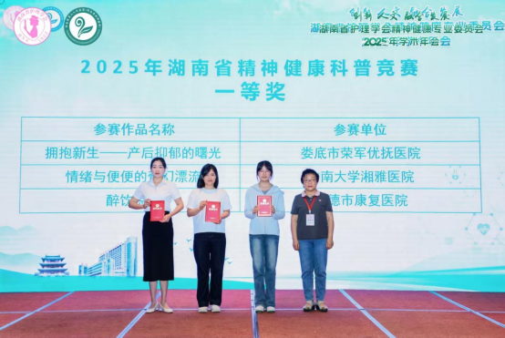 近日,由湖南省护理学会主办,省第二人民医院、省精神健康专业委员会承办的湖南省精神健康科普竞赛在长沙盛大举行。全省各联盟单位的41个优秀作品齐聚一堂,展开激烈角逐。常德市康复医院派出三个团队参赛,凭借出色表现脱颖而出——五病室作品《醉饮惊魂》勇夺一等奖,二病室作品《心灵的紧急制动》荣获三等奖,以亮眼成绩彰显了医院在精神健康科普领域的深厚实力!