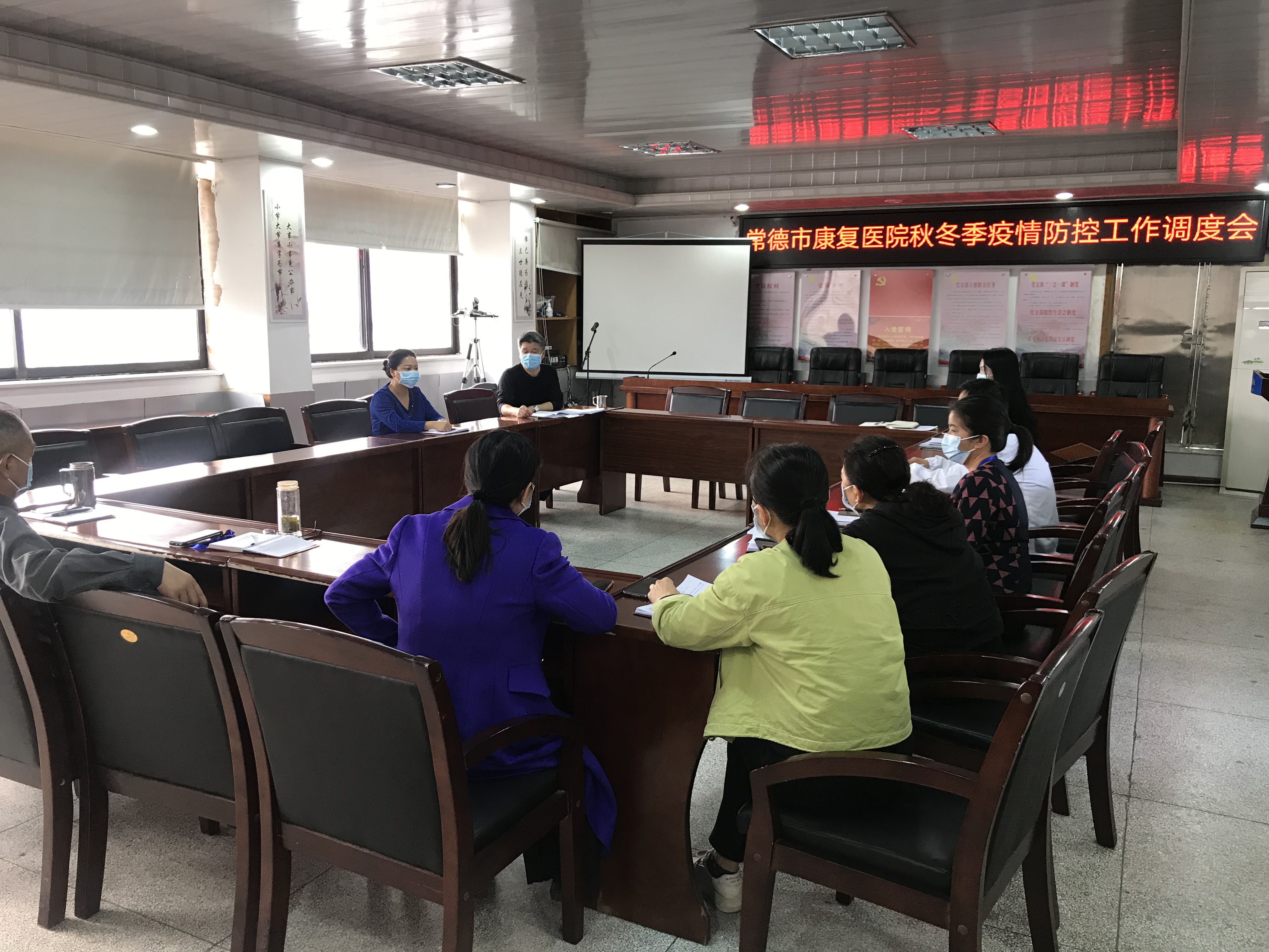 为进一步提升新冠肺炎疫情防控能力和防控意识,做好常态化防控工作,落实“早发现、早诊断、早报告、早隔离、早治疗”措施,10月13日下午,市康复医院召开秋冬季疫情防控工作调度会,医院疫情防控指挥部全体成员参加会议,会议由院长彭宏主持。