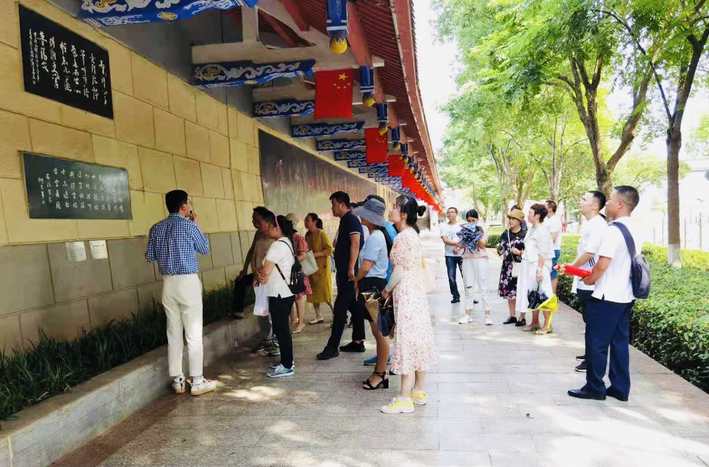 有水就有城,有城就有文化,本次活动首先来到了诗墙。作为世界上最长的诗书画刻艺术墙,它荟萃了许多中国名家的诗词、书法和美术精品,传承着中国几千年来的传统文化。缓缓挪步,时时驻足,党员干部们陶醉在诗词的海洋中。