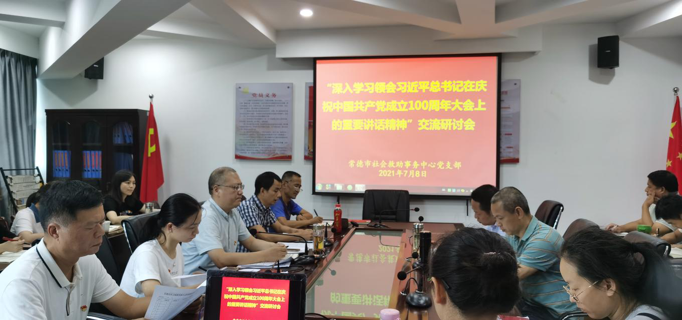 7月8日下午,市社会救助事务中心党支部组织全体党员召开贯彻习近平总书记庆祝建党100周年讲话精神研讨会,会议由支部书记卞德荣同志主持。