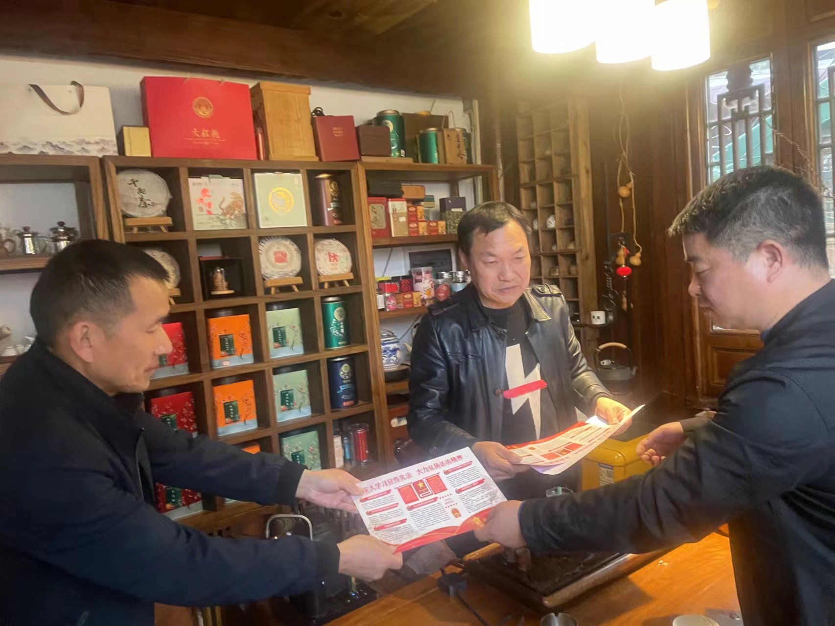 工作人员发放宣传图册